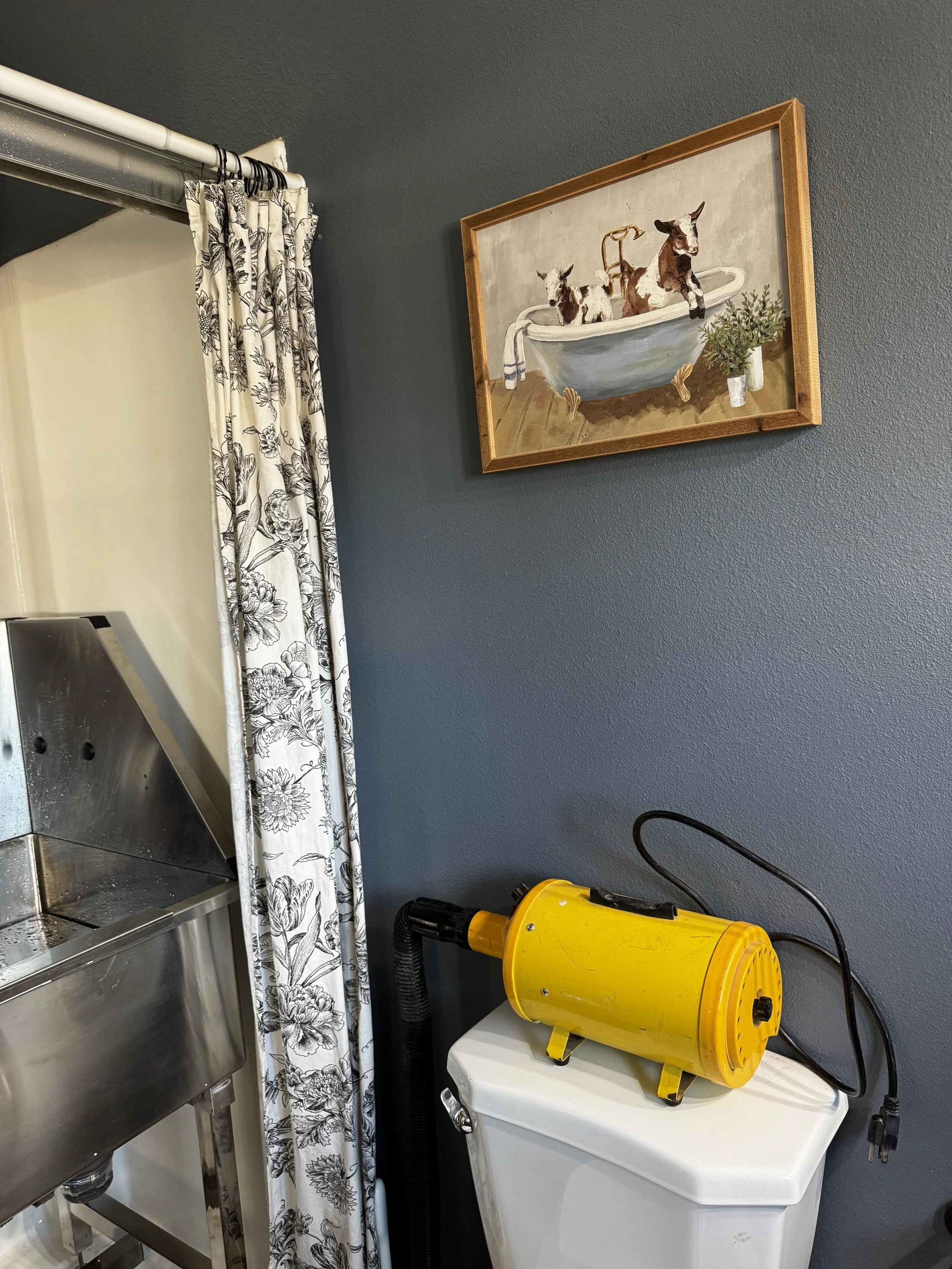 We’re not professional groomers — but we are really good at getting the farm dirt off.