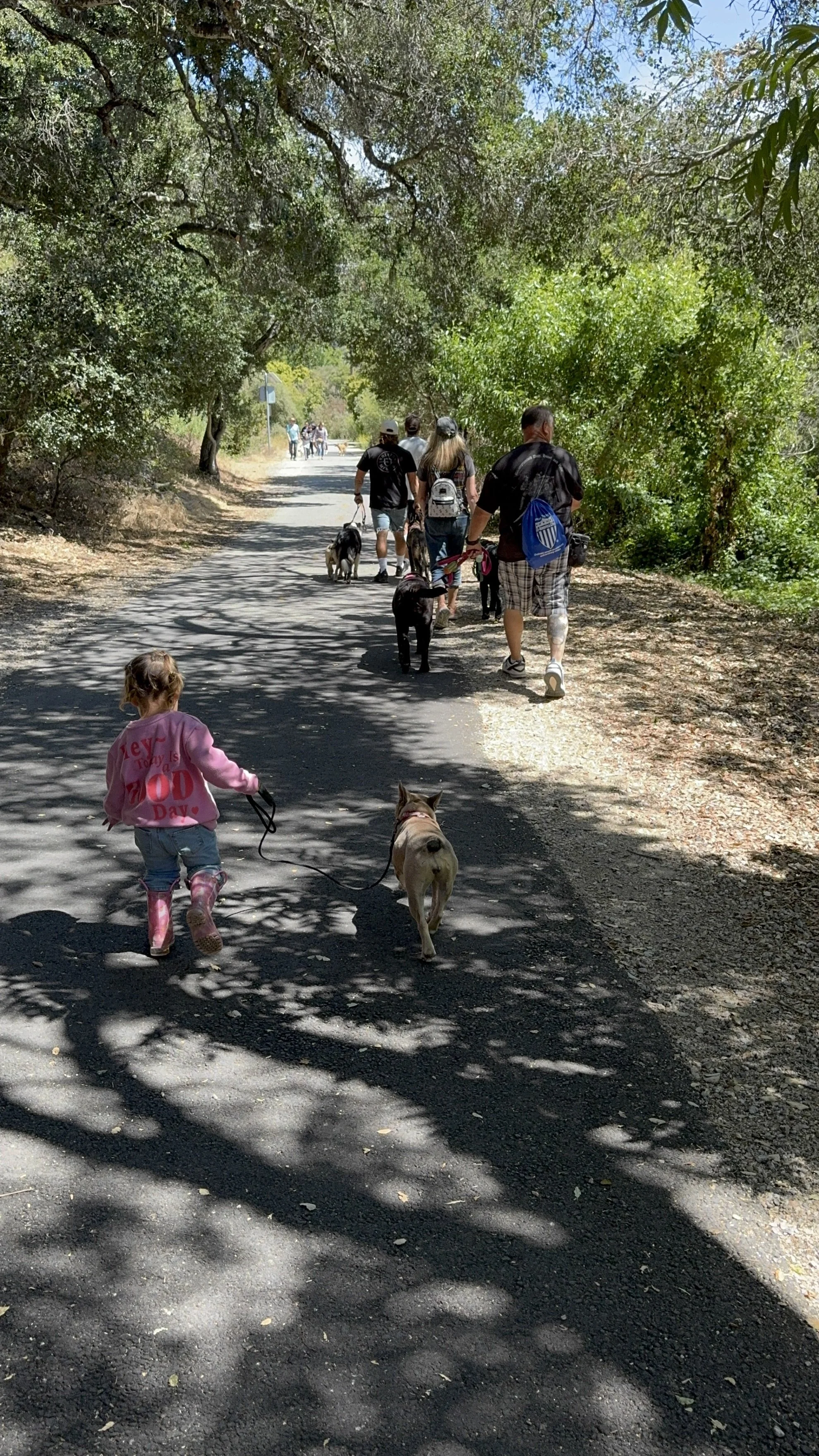 Community Pack Walks are real-life walks— the kind with pauses, snacks, a toddler who occasionally decides to stop and smell the flowers and cycle through pack walking all her own dogs.